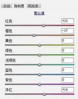 (2)饱和度调整 - 橙、 + 红色、+ 洋红,让橙色减少,红色和洋红更突出。