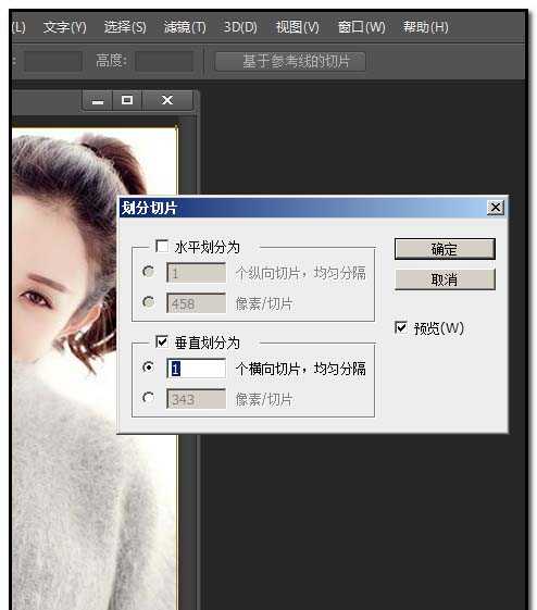 6、弹出划分切片的操作框。因为图片要垂直来分。所以,点选“垂直划分”。