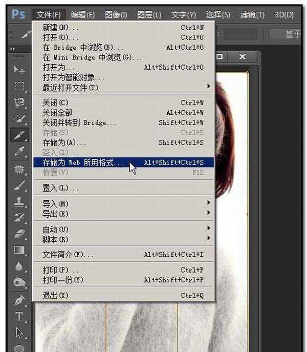 8、然后,点确定。然后,我们把图片保存。点下操作界面左上方的“文件”,弹出的菜单中点“储存为web所有格式“。