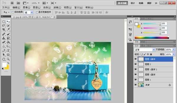 3、复制多个水珠,然后执行滤镜,波浪的效果,设置生成器为10的时候,水珠的就会变小,波长和波幅与水平和垂直的比例大小都为30,可以将整个水珠的效果变得有些波浪。