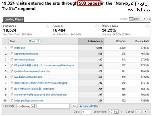 如果SEO做的好,那就能看到一个月比另一个月的Non-paid Search Traffic的Top Landing Pages的数量有所增加(甚至急剧增加)。比如,这个月是508,而下个月是530,那么不错!:) 我的博客(www.chinawebanalytics.cn)是这个情况,靠谱。