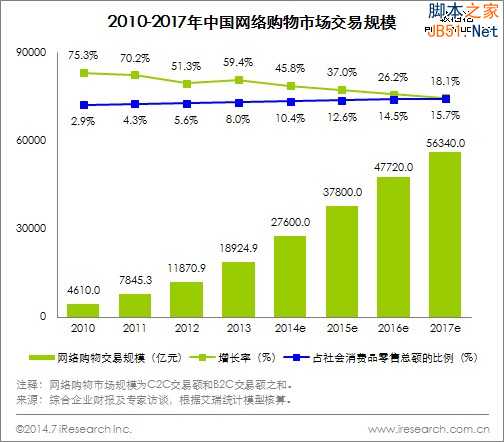 其实,作为一个对京东模式比较熟悉的人,十节甘蔗的说法比较贴切的抽象出了京东模式的实质,即把控整个零售环节,无缝为用户提供服务。十节甘蔗描述的是正是消费品零售行业的供应链模型,对应的是电商中的B2C模式。根据艾瑞咨询的数据,2013年B2C在网络购物市场中占比达到40.4%,B2C市场增长迅速,预计2014年在网络购物市场中占比将近半。也就是说,随着消费者购物意识、对品质、服务的重视,B2C将会是未来几年线上越来越重要的购物模式,也会是今后京东和阿里正面交锋的主战场。