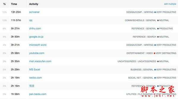 推荐一下ManicTim(时间追踪分析软件):下载之后让他自动运行一周,打开软件的报表,你会认识到一个事实,现在不NB原因不是因为自己天赋不够,而是努力程度确实太低,大部分人每天上网的时间至少有一半被一些非工作相关的娱乐、购物网站所占用。