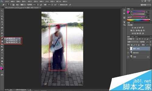 第十三步,到这里就基本完成了,但是光线通过物体的时候都是会被遮挡到的,所以这个时候我们可以选择橡皮擦工具把人物主体部分身上的光照效果擦除掉就可以了,画笔硬度的设置50%就可以了,太生硬显的太假了。