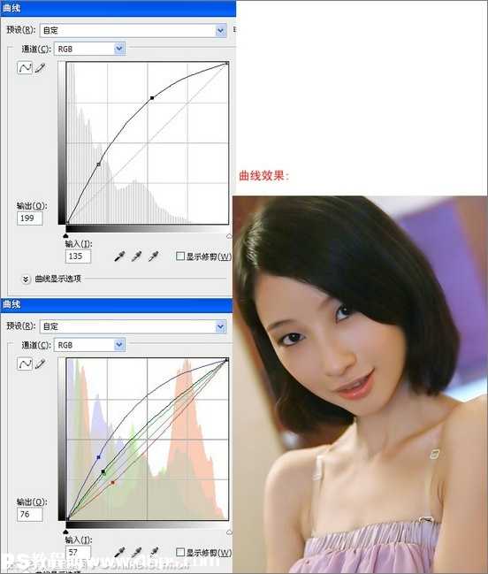 2、根据每张图片的需要调色,曲线调(Ctrl+m),确定,再调出曲线窗口继续曲线,通道RGB、红、绿、蓝按照图片