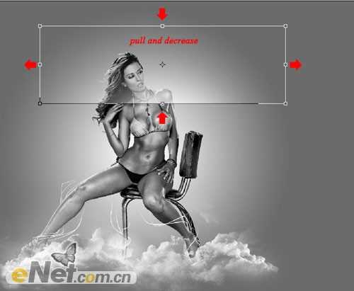 8、合并图层,使用变换工具调整到如图所示效果。