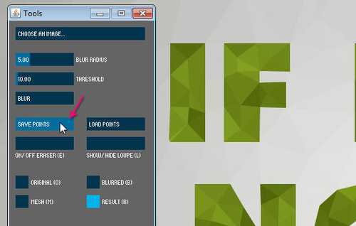 因此,如果在PS中使用不同的颜色样式创建文字,同时需要创建低多边形样式, 只需使用Image Triangulator App打开图像,并单击 LOAD POINTS按钮,打开之前保存的坐标文件即可。