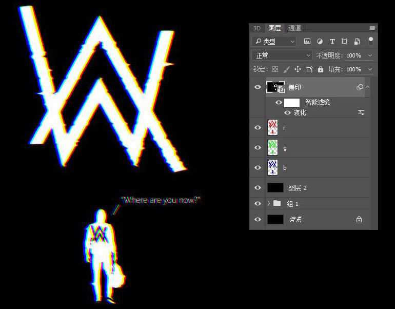 12、分别轻微移动RGB三层,效果出现。盖印所有图层。