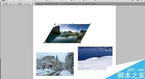 7、同理,将剩下的两张风景图,也都拖入空白画布中。然后又运用排列文档的功能,合并图片。