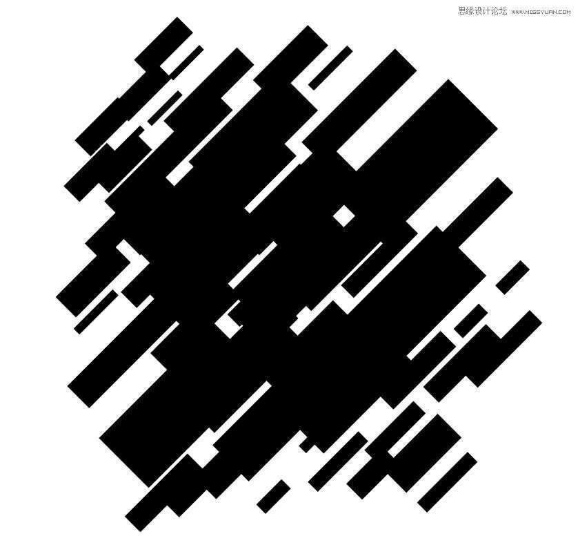 打开AI,新建一个1800px*1800px的文档。在画布中画上如下图所示的几个黑色矩形。关闭矩形的描边。矩形的排列和大小随机。