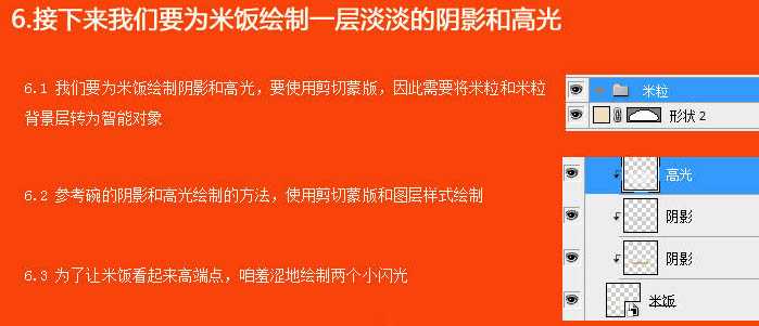 16、接下来我们为米饭绘制一层淡淡的阴影和高光。