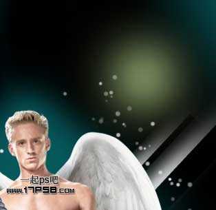 下面我们制作一些光条,新建图层白色大口径柔角笔刷点一下,图层不透明度改为70%。