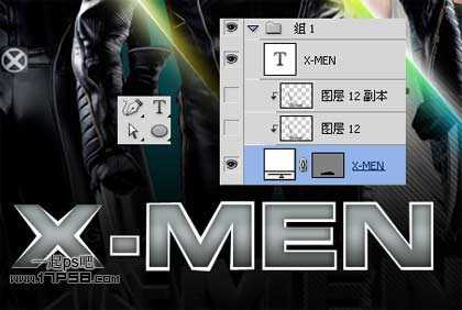 下面制作文字效果,输入白色文字X-MEN,字体Eurostile LT Std,复制一层。