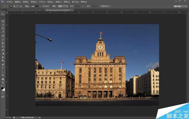 8、如果觉得建筑和后面的天空色彩不搭,可以选择“曲线”调节;如图所示: