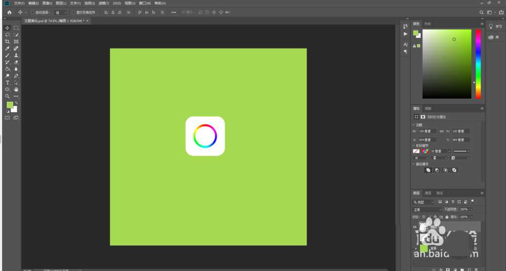5、最终调整一下圆形与矩形的位置,一个主题美化的APP七彩渐变的图标就做好了。效果如图所示