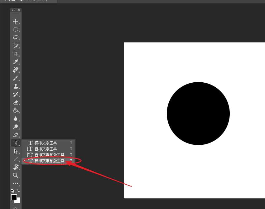 3、选择文字工具下的横排文字蒙版工具,长按鼠标左键即可弹出子级菜单!