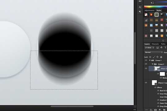 8、用矩形框选工具>删除多余部分,把图层放在圆的底层,透明度设置在25%-75%。