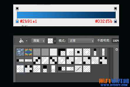 在按钮图层上新建一个图层命名为“纹理”然后按住Ctrl键再点击按钮图层会出现它的选取,在纹理图层上填充图案,最后该图层模式为柔光并适当降低不透明度。
