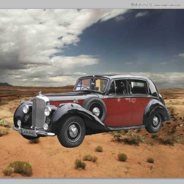 3、在这一步中,我们将使用钢笔工具抠出汽车并将其放置在沙漠中,并把窗户部分删除。