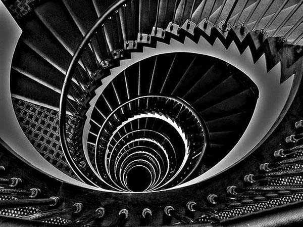 5、径向模糊后的螺旋楼梯效果图如下,让人产生一种眩晕感。