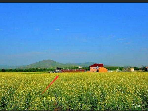 9、按Ctrl+O打开图像文件——遍地的油菜花.JPG。