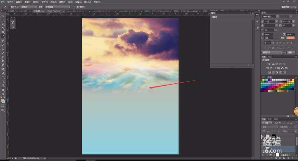 9、最后,我们可以使用图层蒙版或者橡皮工具,将图片的边界进行涂擦,将图片的边缘进行模糊化,或者直接将“地面”的图层放置到其他前置景物图层的下方,这样就可以让地面和其他景物完美融合。
