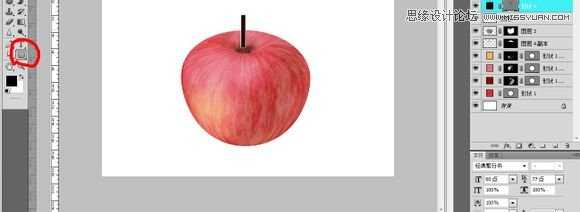 按住传统ctrl建鼠标同时点击画红色处的矢量图。会出现苹果的外形选区然后新建一个图层
