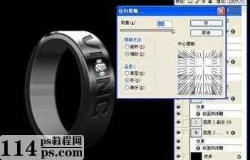 把钻石层合并,ctrl+J复制一层,然后径向模糊