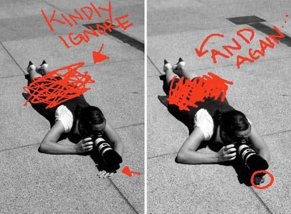 有时机身因加了手柄或受限于专业相机的庞大体积,即使让机身跟地板玩亲亲,镜头离地面仍有一段距离。这时就要善用你的手,以摊平或握拳的方式支撑镜头以达到平衡。既然已经趴在地板上了,就尽量让更多的身体面积贴近地板,大不了起来后再拍拍身上的灰尘啦。