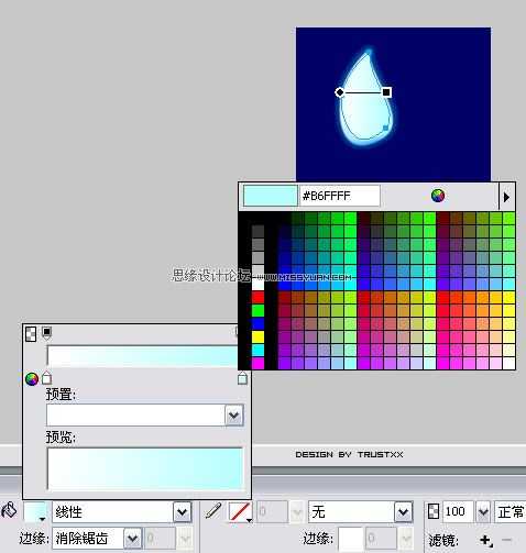 随意新建一个画布,填充背景色为#000066,钢笔勾出基本形状,羽化边框(半径1),填充放射性渐变,外加滤镜外发光,效果如图: