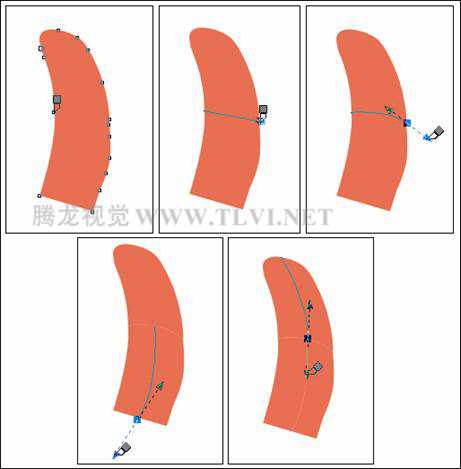 (6)使用相同的操作方法,参照图12-43所示沿白色线条将其它图形分别切割为四个小图形。然后再将底部的图形分别切割为两个图形。