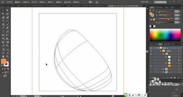 1、先用钢笔画出黄橙的外皮的轮廓,我们使用网格工具点击这个外皮再分解成一个个不同的色彩区域。