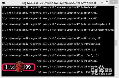 按键盘上的Enter键(回车),直到屏幕滚动停止(一定要完全停止后才退出管理员命令窗口,否则还有dll文件没有注册)。