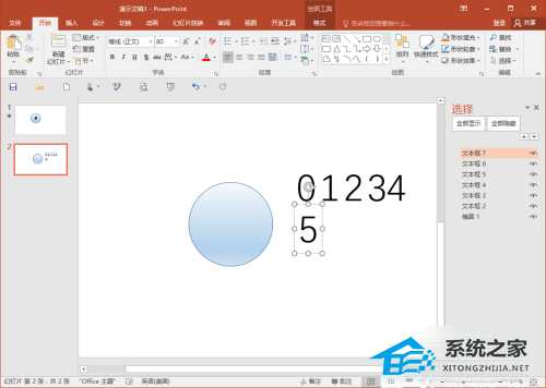 第二步,然后再输入文本,选择插入文本框,从0-5,分别输入,然后再把文本拖到正圆中间,这里主要,要倒数,所以0在最底下,5在最上面。