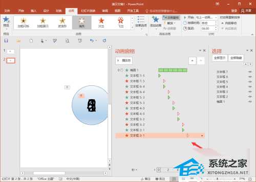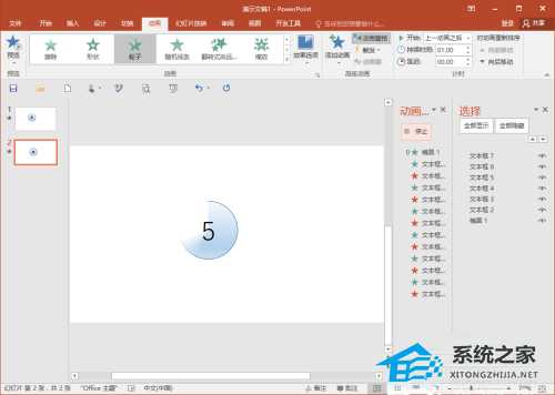 第四步,我们再对数字文本设置一下动画,先从数字5开始,需要两个动画,第一个“出现”,开始为与上一个动画同时;第二个“消失”开始为与上一个动画同时和延迟1秒。
