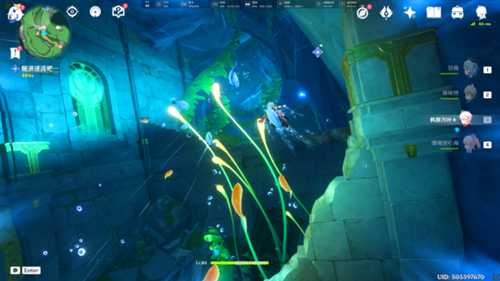 我们需要先下去开启机关,然后随着水位上升,继续跟随着仙灵前进。