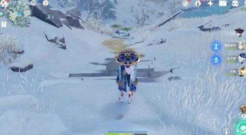 请让角色向小地图的西侧飞行一段距离,并将视角转向角色的右侧,这样就能看到丘丘冰盾。