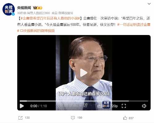 暂无“侠义长存!金庸曾希望百年后还有人看他的小说”评论...