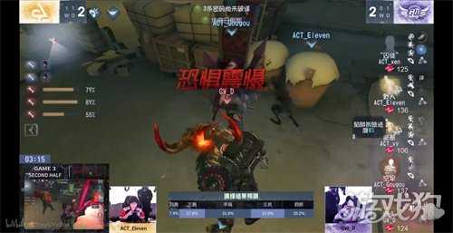 第一天GW vs ACT 第三局下半局,GW_D鹿头决胜局二连震慑,奇迹四抓:在前两局游戏中落后的GW监管者在本局必须多抓,选择鹿头,开局追击邮差,使用移形欲拉近身距却来到空军面前,空军开枪但还是吃刀,被快速换追击倒,密码机勉强三台。守椅战中,求生者方欲保平,选择让野人压满救,但是GW_D举钩压迫,钩中野人后出刀震慑,二连震慑打乱求生者局势。将野人挂在遗产机后,底牌切失常,终结求生者保平的希望,四抓拿下比赛胜利。